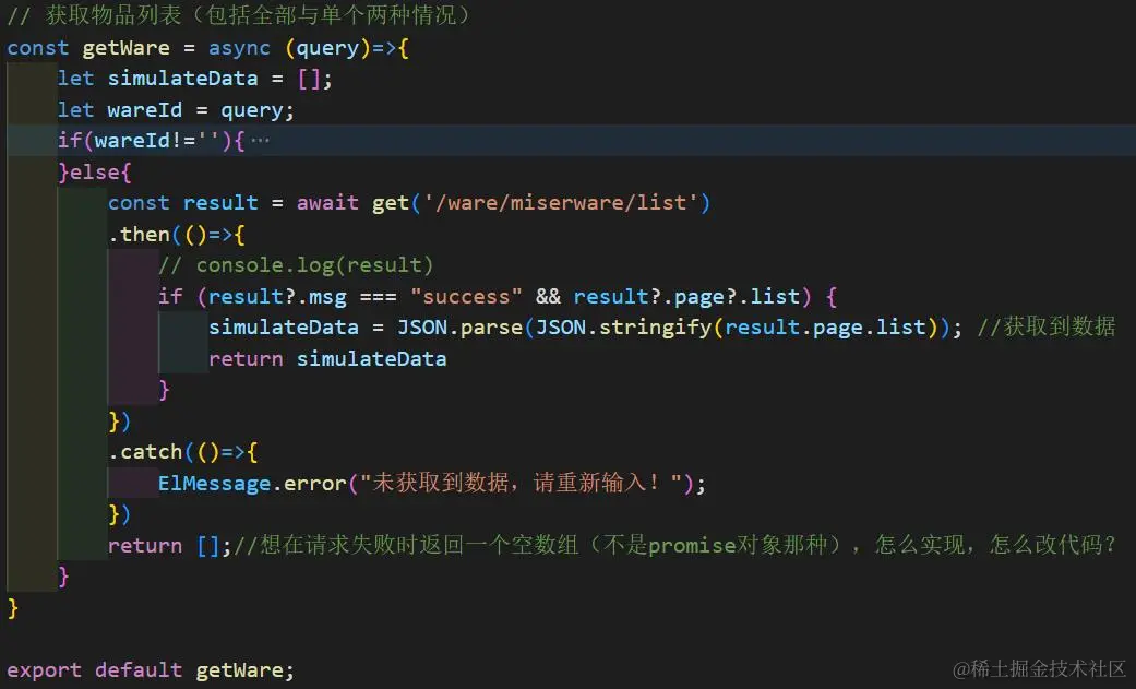 3.5 原本的代码无法实现需求——就是发起了请求,请求成功的时候返回请求的值给外部使用,请求失败的时候返回一个空数组给外部使用。