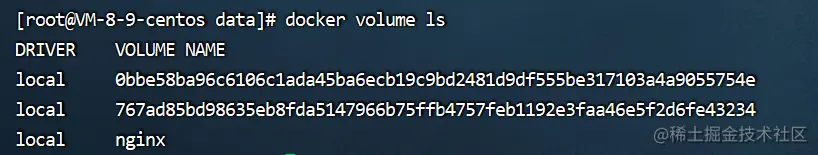 docker run -d -p 80:80 -v /etc/nginx nginx:运行 nginx 镜像,并使用匿名挂载,只写容器内路径