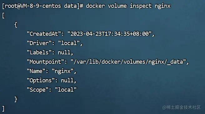 docker run -d -p 80:80 -v nginx:/etc/nginx nginx:运行 nginx 镜像,并使用具名挂载