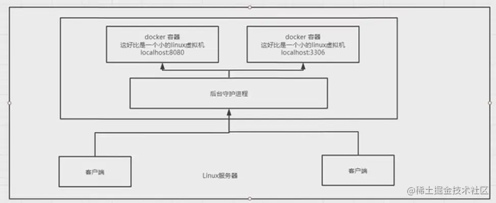 Docker 是一个 Client-Server 结构的系统,Docker 的守护进程运行在主机上,通过 Socket 从客户端访问