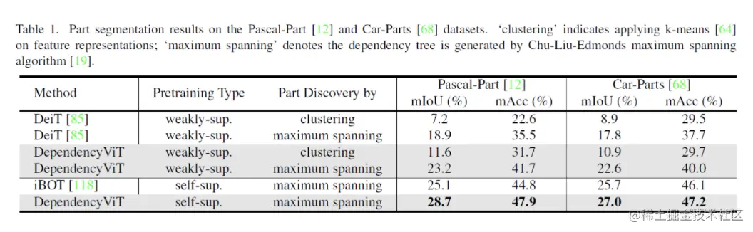 - DependencyVit 对视觉依赖关系解析非常有效,如无监督部分分段任务所示。