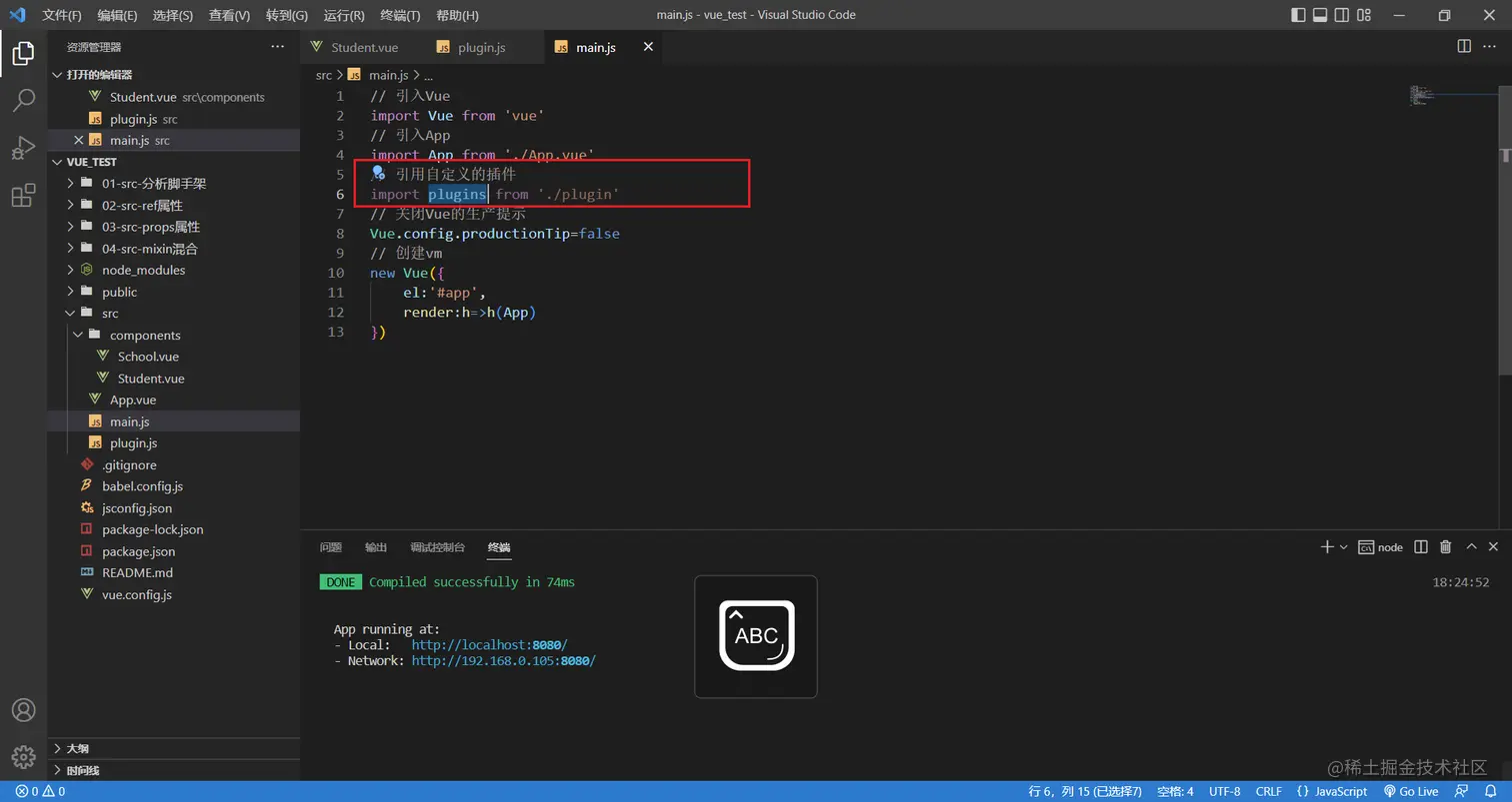 定义好了之后,需要引用插件,在vm创建之前就要加载插件,所以要在main.js中引用插件并且引用