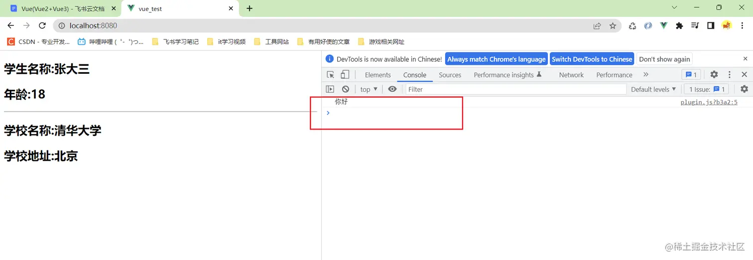 这时候再看控制台,看到了插件中定义的输出