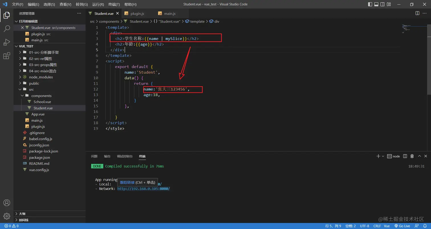 然后去组件里面使用过滤器