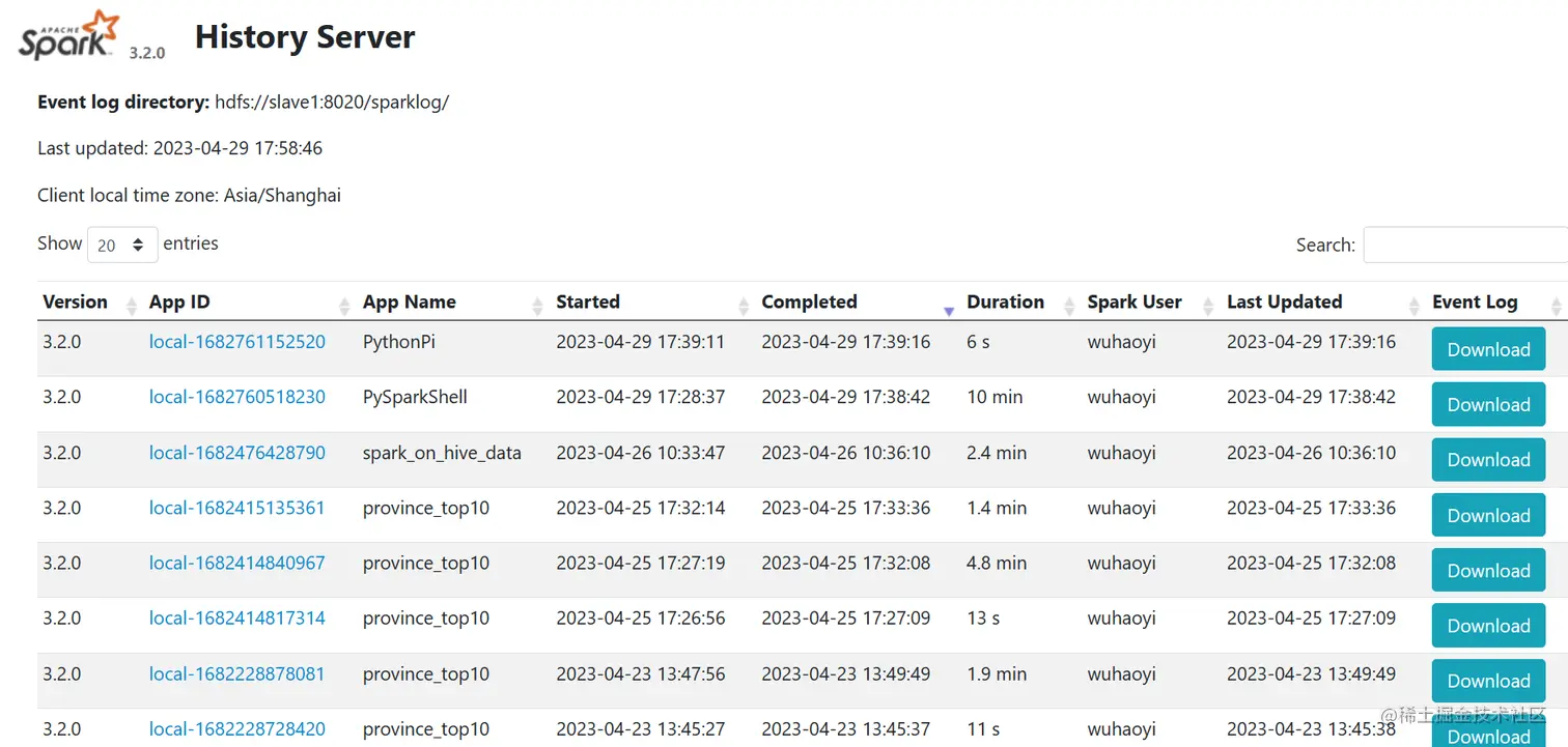 - 下载安装包(3.2版本):dlcdn.apache.org/spark/