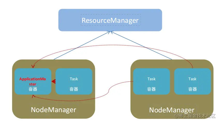 - 单任务管理者(Master):ApplicationMaster