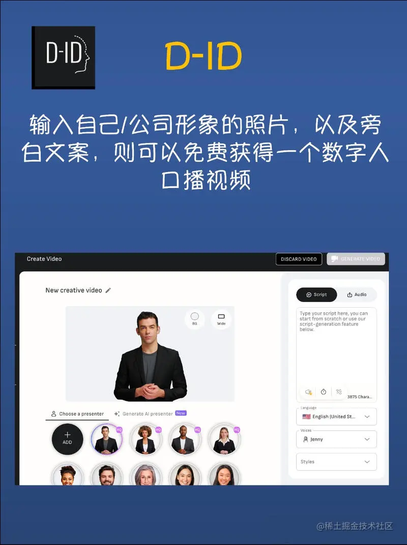 - 直播达人:使用Did,输入个人/公司形象照片及旁白文案,免费获得数字人口播视频。