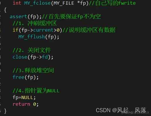 int MY_fclose(MY_FILE *fp)//自己写的fwrite