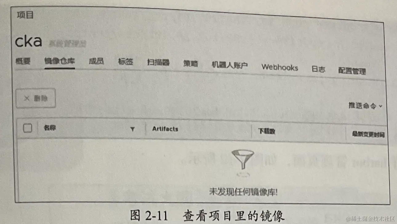 点击镜像仓库,可以看到没有任何镜像,如图2-11所示。