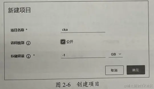 项目名称输入cka,访问级别选择公开,单击“确定”按钮。