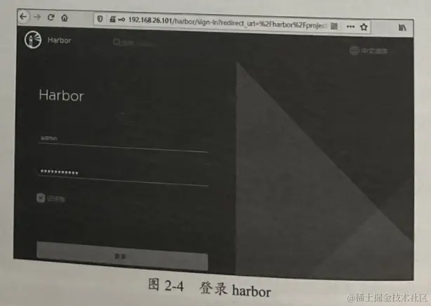用户名输入admin,密码输入Harbor12345,单击登录,如图2-5所示。