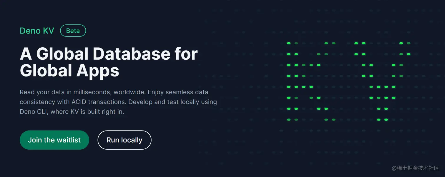 Deno KV 支持无缝集成到开源 Deno runtime 中,允许在本地运行它或将其部署为零配置的托管服务。