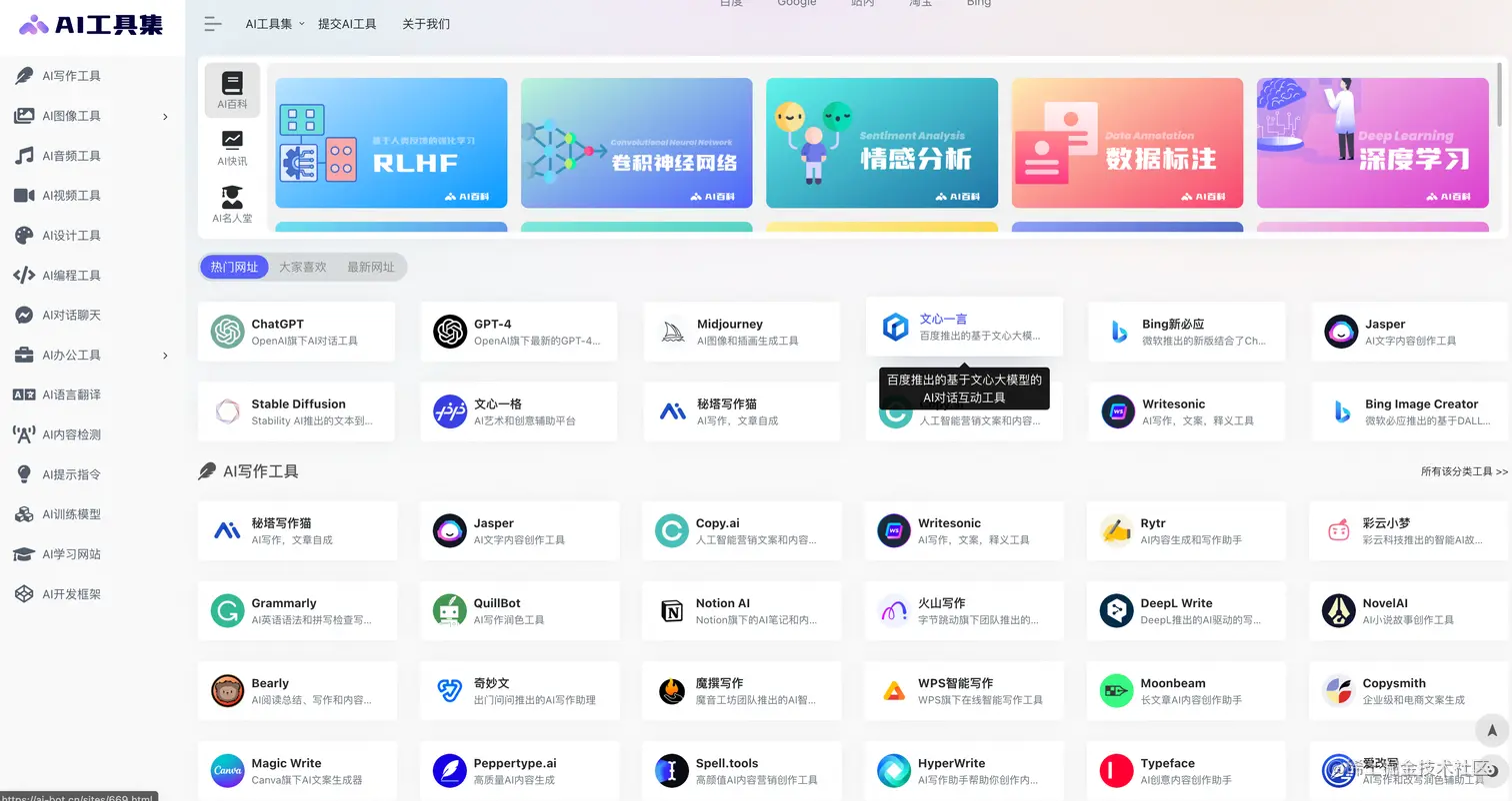 网址分门别类的整理了许多AI相关的站点和工具,适合放入收藏夹