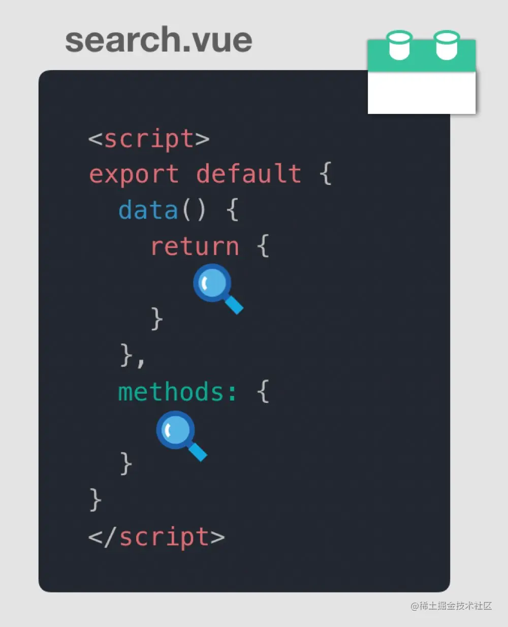 这个组件的代码,使用标准的 Vue 组件语法,看起来像这样: