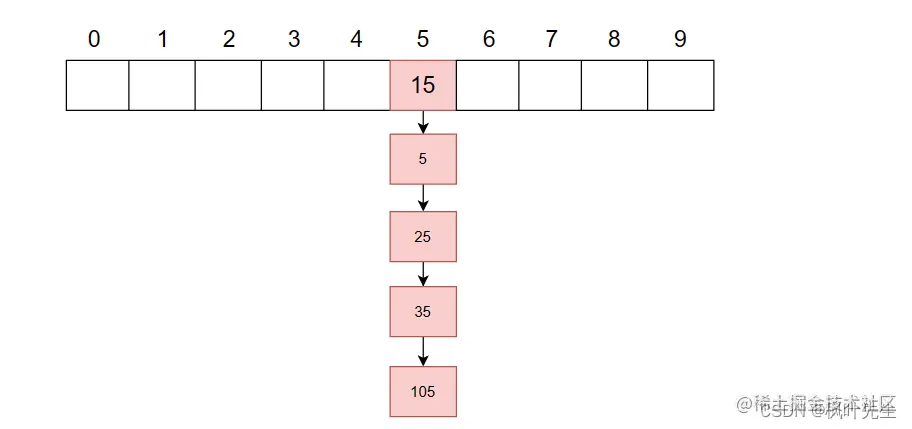发生哈希冲突后,需要从发生冲突的位置开始,依次向后探测,直到寻找到下一个空位置为止