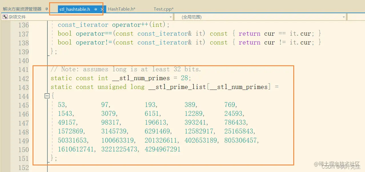 每次增容时让哈希表的大小增大两倍,那么增容后哈希表的大小就不是素数了。因此我们可以将需要用到的素数序列提前用一个数组存储起来,当我们需要增容时就从该数组当中进行获取就行了