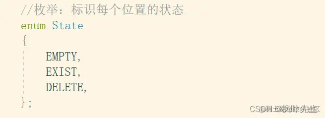 在闭散列的哈希表中,哈希表每个位置除了存储所给数据之外,还应该存储该位置当前的状态,哈希表中每个位置的可能状态如下: