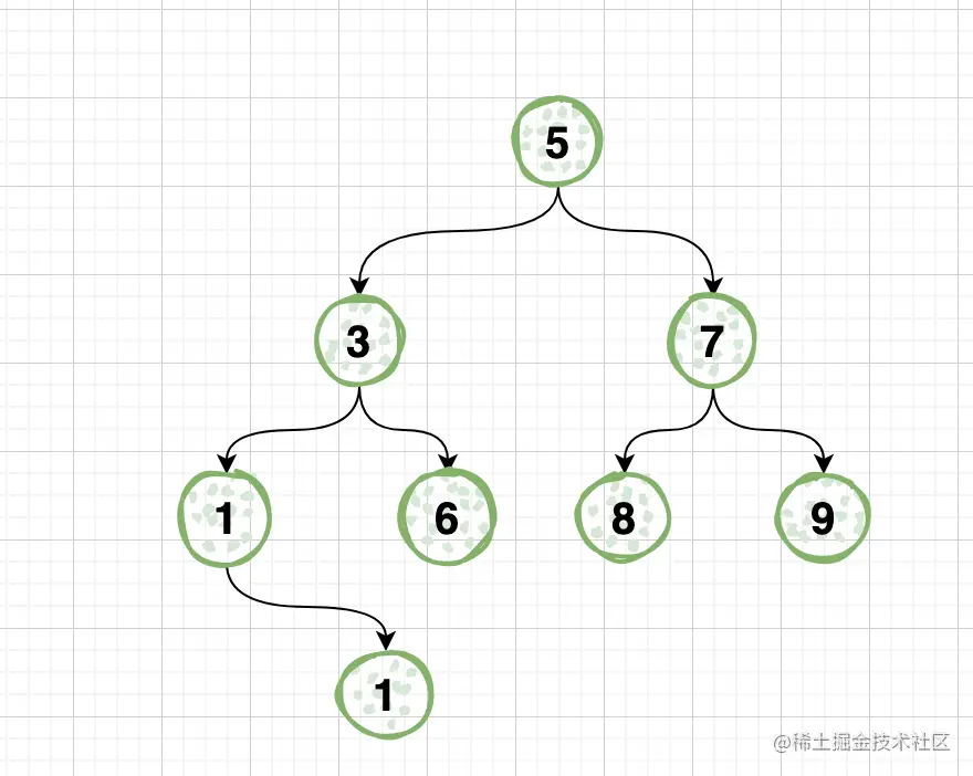 如下图中,节点8和节点9的公共祖先有节点7和节点5,节点7距离节点8和节点9最近,所以节点7为节点8和节点9的最低公共祖先。