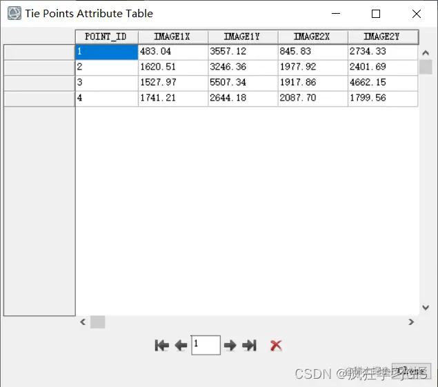 此时可以点击“Show Table”,查看每一个种子点在两景图像中的位置。