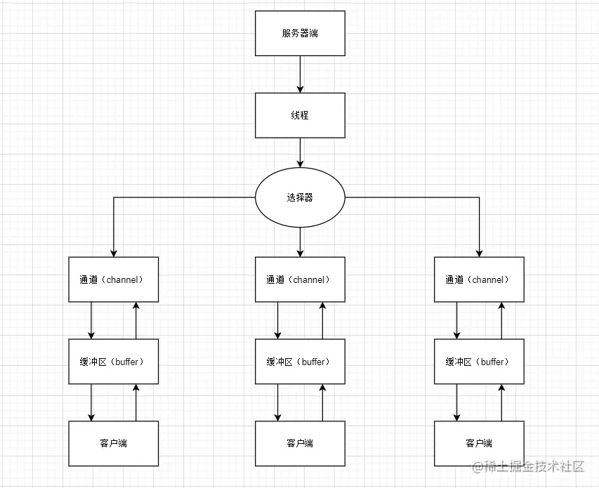 Java中的NIO,有一个十分重要的概念,就是选择器(selector),也被称为多路复用器,通过它就可以实现使用一个线程管理多个客户端连接(这里是不是和BIO就不一样了,最大的优化的点就在这里) 。当客户端数据到了之后,线程再为客户端进行服务。