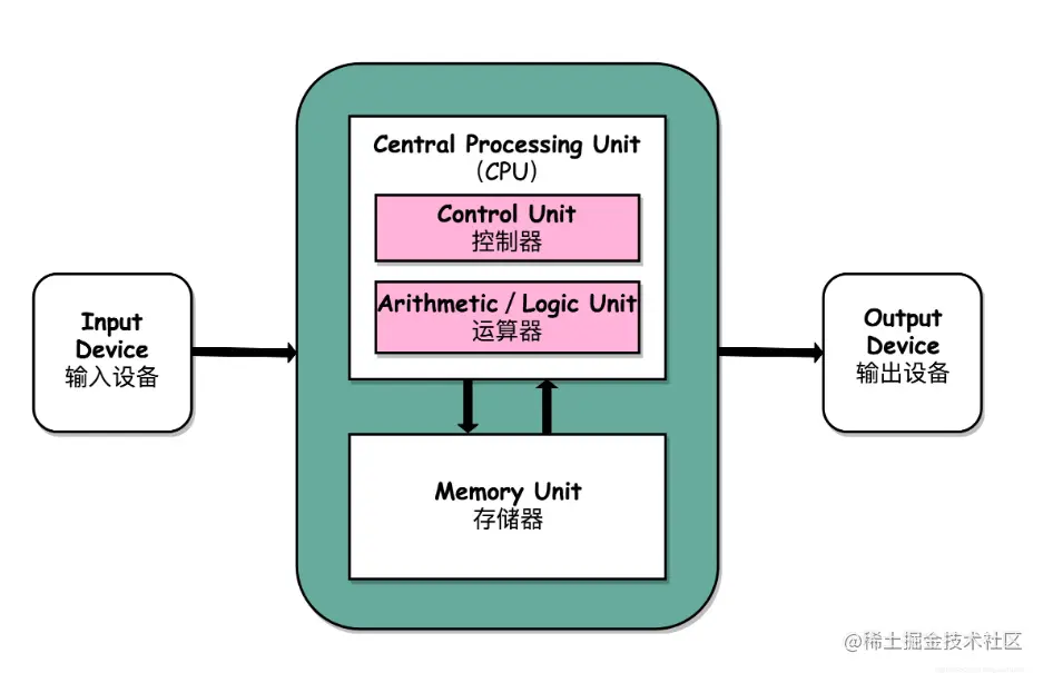 IO(Input/Output),也就是输入和输出的简称,从计算机结构的角度来看,IO,就是输入数据到计算机中,计算机输出数据到计算机外,下面有一张十分经典的冯·诺伊曼结构图,将计算机分为五大部分:运算器、控制器、存储器、输入设置、输出设备。