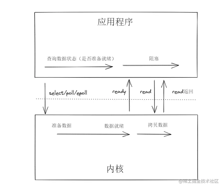 那么从应用程序的视角去看IO的话,我们的应用程序发起对操作系统的内核发起IO调用(系统调用,注意只是调用),操作系统去负责内核执行具体的IO操作。(如果这段话不是很好理解,可以理解为调包,比如别人写好了的工具类,我们不需要关注里面的实现细节,只需要调用它的方法就好了,这里我们的应用程序就是发起了一个调用,但是真正执行的还是我们的操作系统)