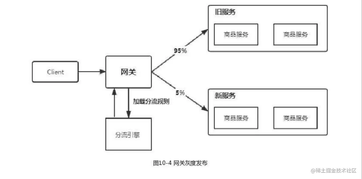 而对用微服务来说,网关是所有流量的入口,因此可以在网关层进行灰度规则的配置与流量的分发,从而实现灰度发布。网关对请求进行拦截后,根据分流引擎配置的分流规则进行请求路由。
