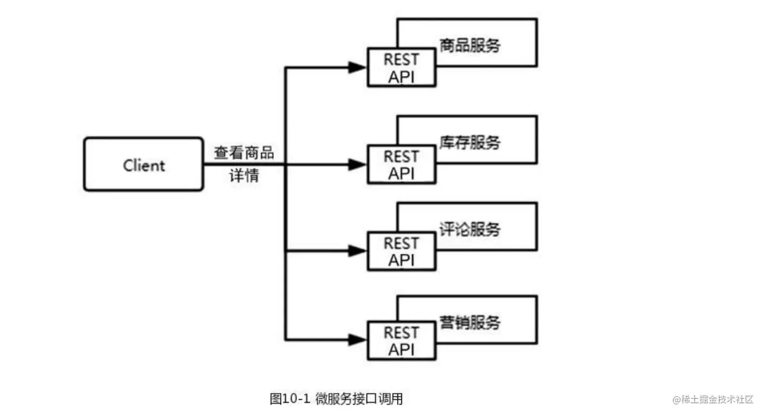实现微服务以后,用户查看商品详情可能需要调用多个微服务才能完成商品详情页面的组装。这也随之带来了新的问题: