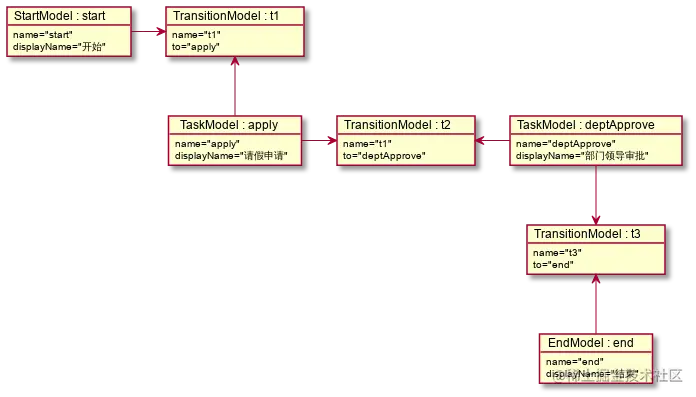 StartModel(start)->TaskModel(apply)->TaskModel(deptApprove)->EndModel(end)