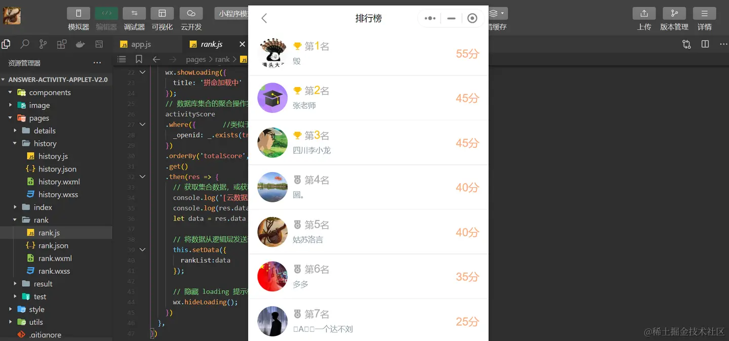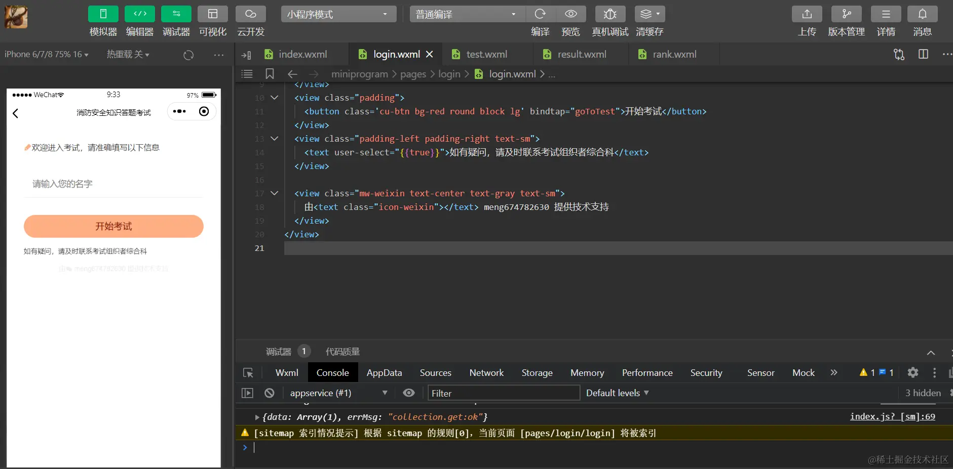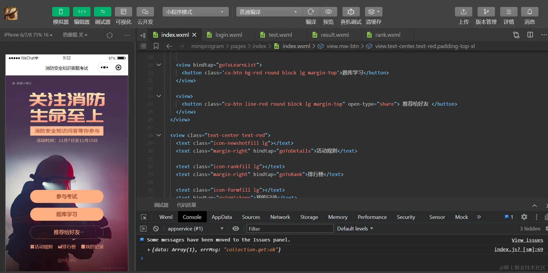 具体操作、配置以及示例数据等及其他集合此处省略,详细请查看【基于云开发的答题活动小程序v3.0-运行部署帮助文档】。