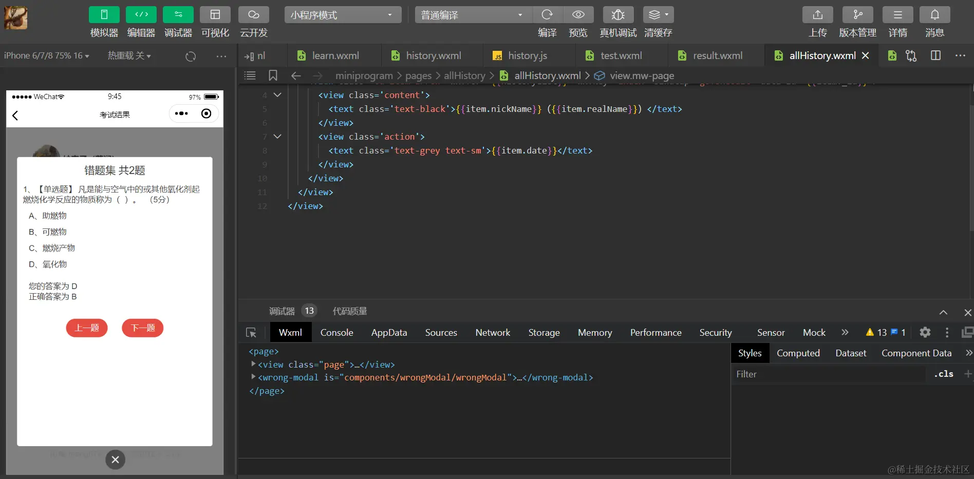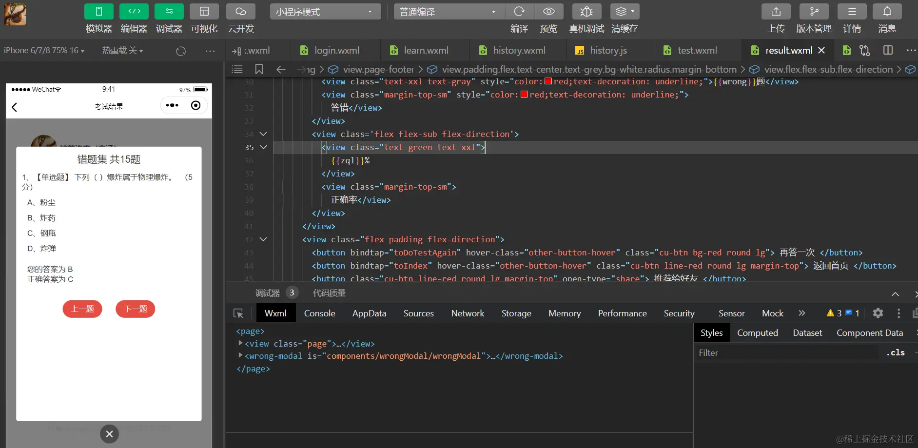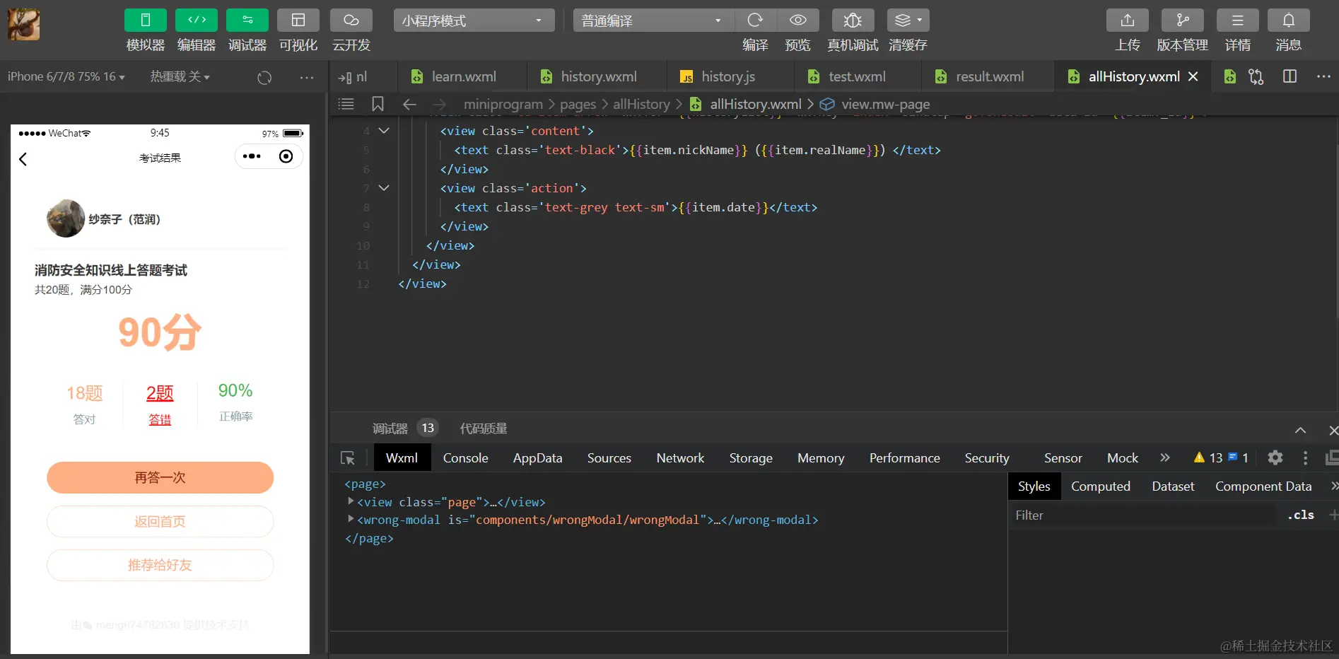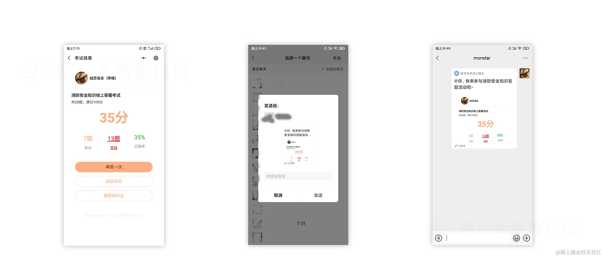 - 答题页、结果页界面,增加展示微信头像和昵称栏目√