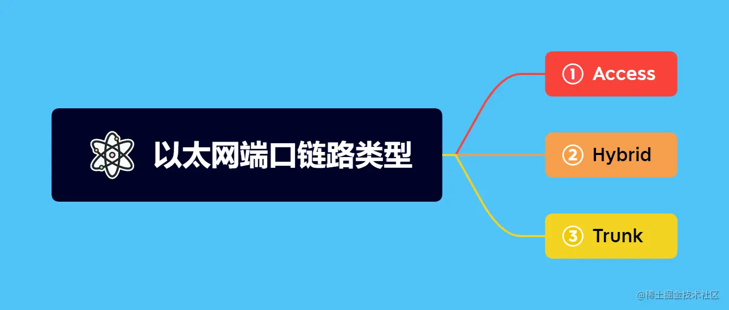 以太网是计算机网络中最常用的协议之一,它允许计算机在同一局域网上通信。在以太网中,交换机(Switch)是一个重要的组件,它们有许多不同的端口,用于连接不同的设备。为了管理和维护这些端口,有三种常用的以太网端口链路类型:Access、Hybrid和Trunk。