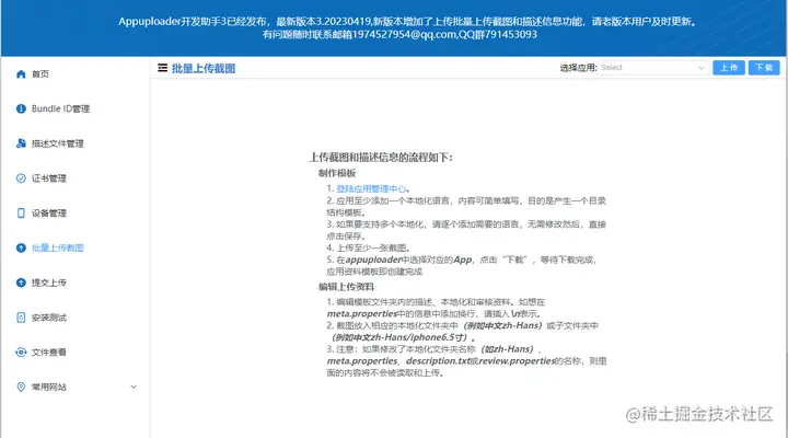 进入批量上传截图页面。根据提示操作,上传APP,点击下载,应用资料就下载完成了。