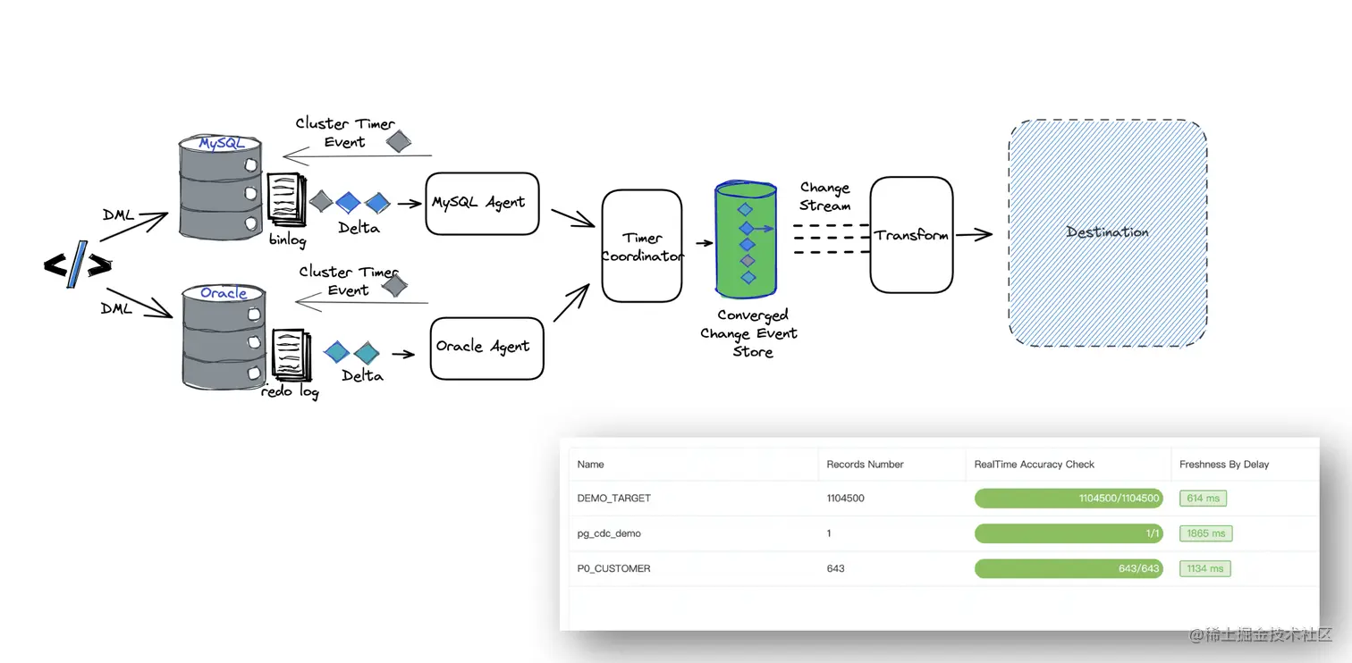 ① 坚固的数据库实时复制底层能力 – 低延迟,精准监控,增量校验