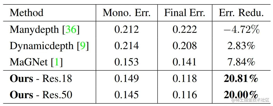 - 单帧动态结构信息可用于增强多帧动态区域精度,最终输出高精度的动态场景深度