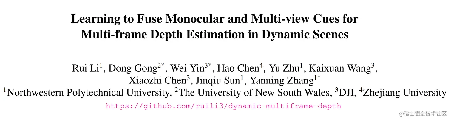 多帧深度估计依赖静态场景下的多视角一致性获得高精度结果。然而,在室外场景中,由于存在各类违反静态假设的运动区域,导致多帧方法在动态区域的精度显著降低。本文提出了一个适用于动态场景的多帧深度估计网络,其通过提出的跨线索注意力机制Cross-cue attention, 有效结合并进一步提升多帧/单帧深度线索的优势,在无需引入任何动态区域分割情况下, 实现显著优于单/多帧方法动态区域深度估计效果。
