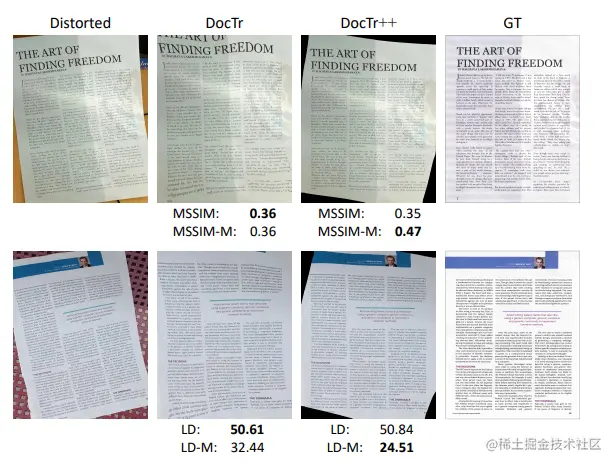 通过定量实验和定性对比,作者团队验证了 DocTr++ 的性能优势及泛化性,并在现有及所提出的基准测试中刷新了多项最佳记录。