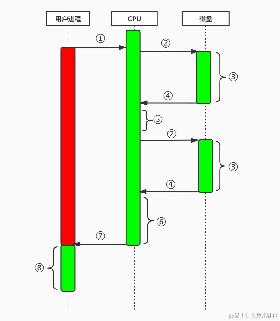 磁盘IO的流程如下图所示: