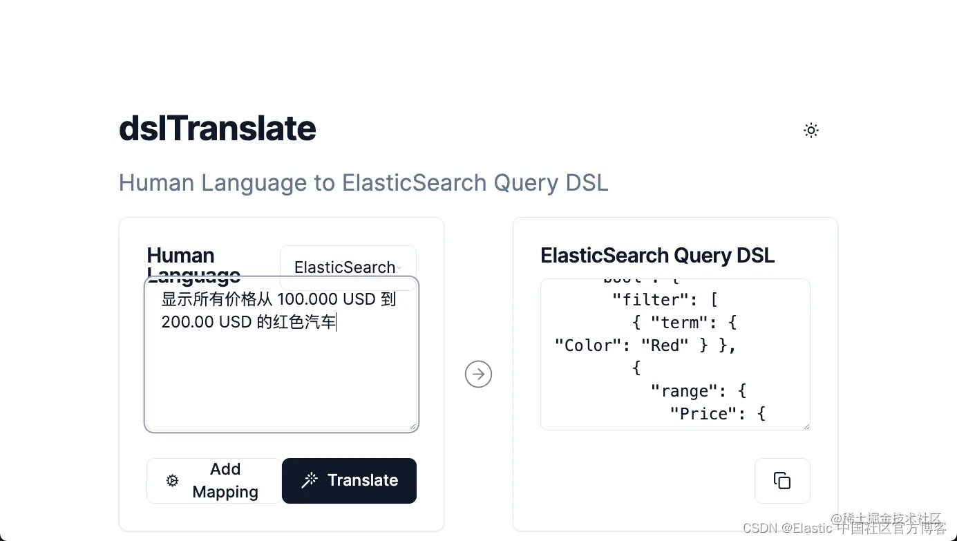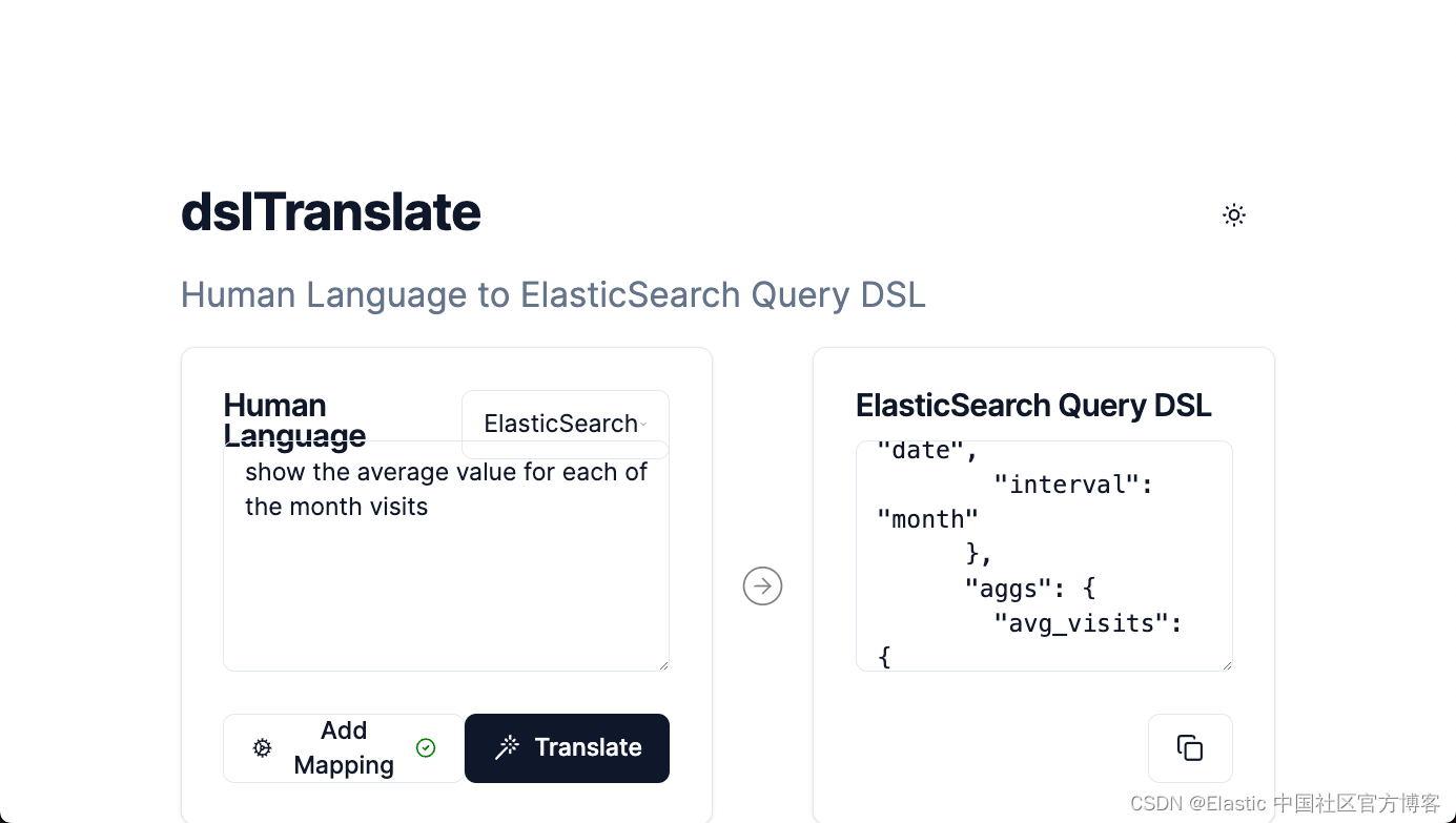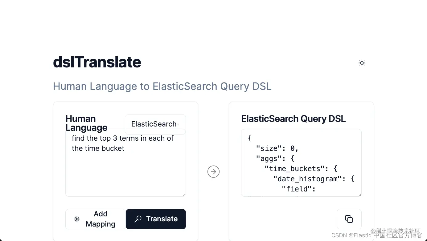 在今天的文章中,我来详细介绍一下一个网络上的工具。它可以帮助我们从人类语言的描述到 DSL 查询的转换。它的网址是 www.dsltranslate.com/。虽然我不知道它是如何实现的,但是从实现的方式上感觉非常像 ChatGPT。