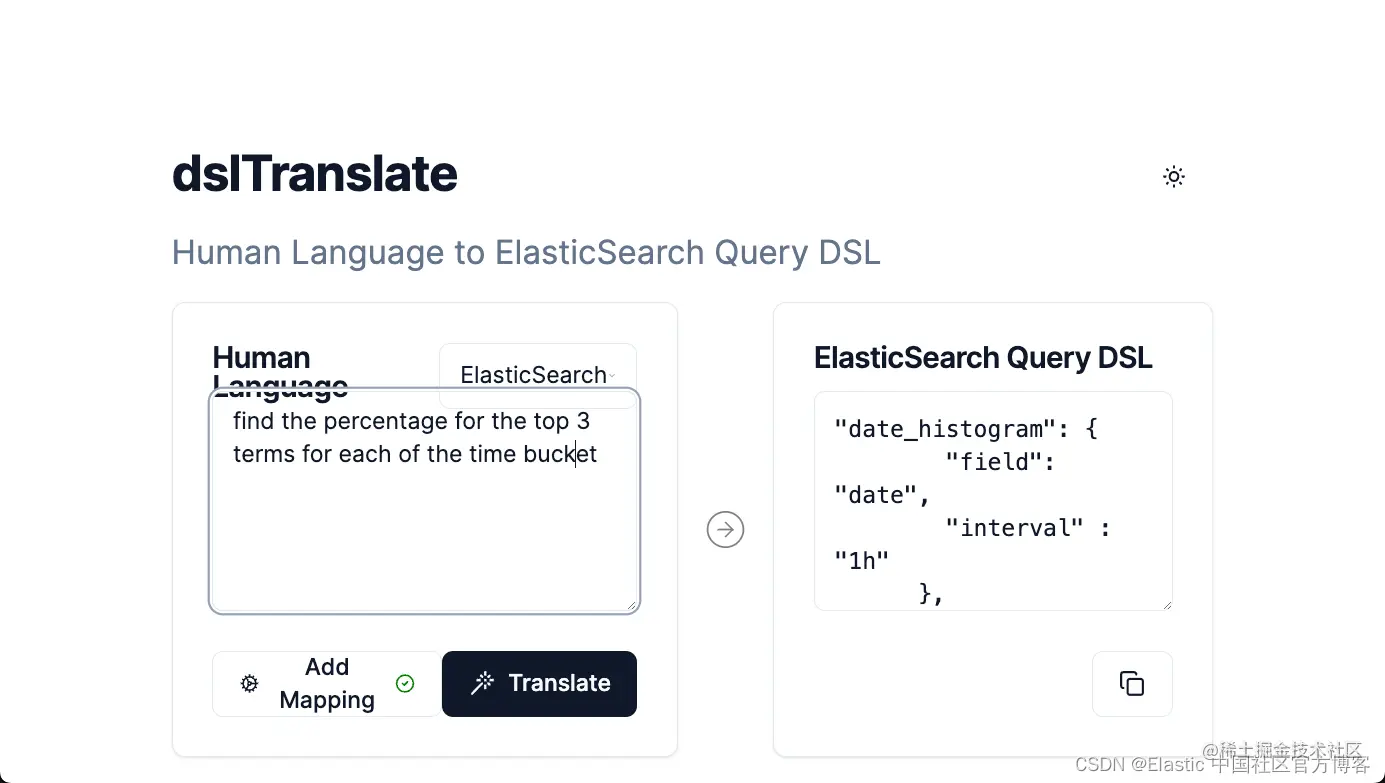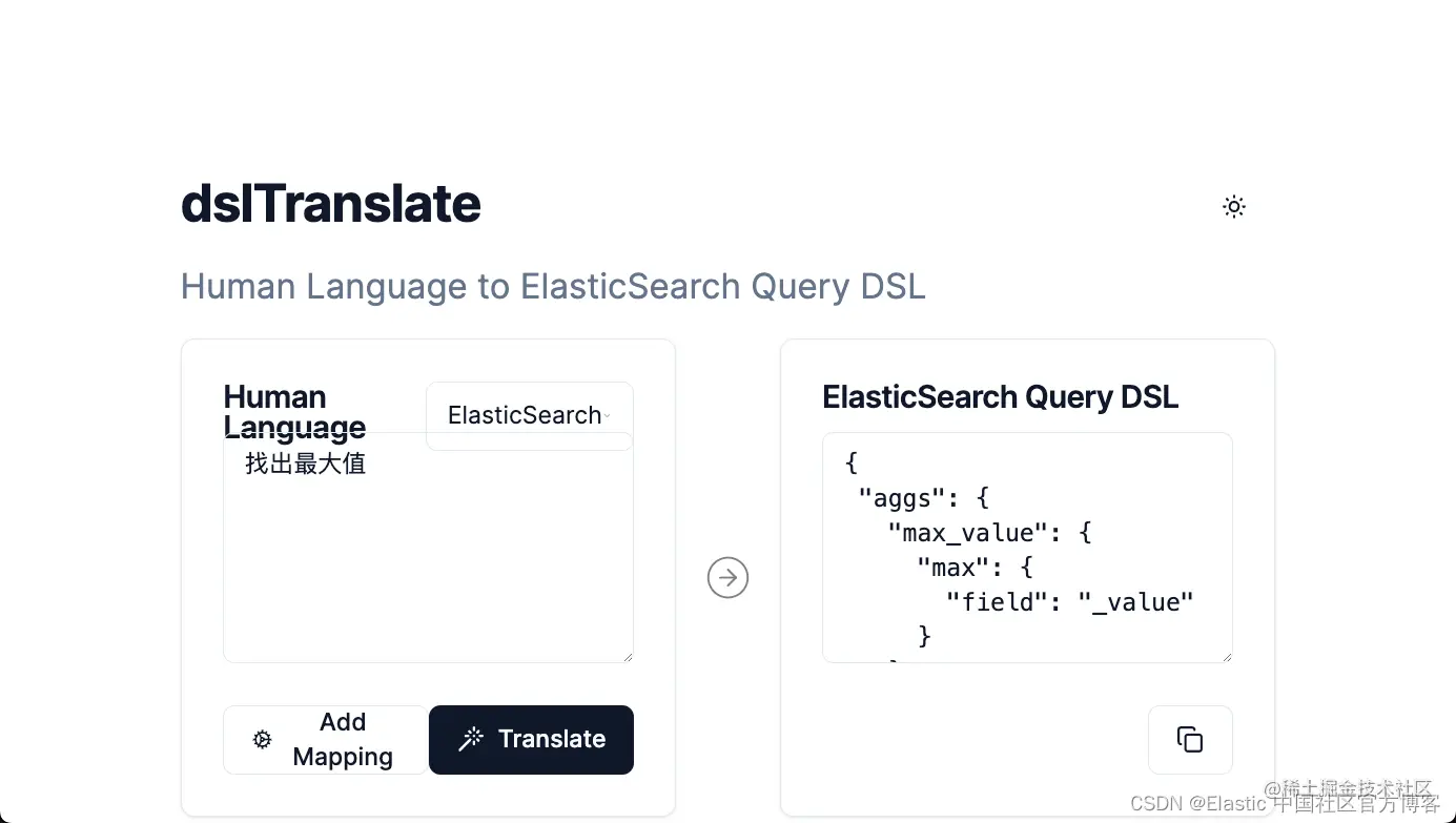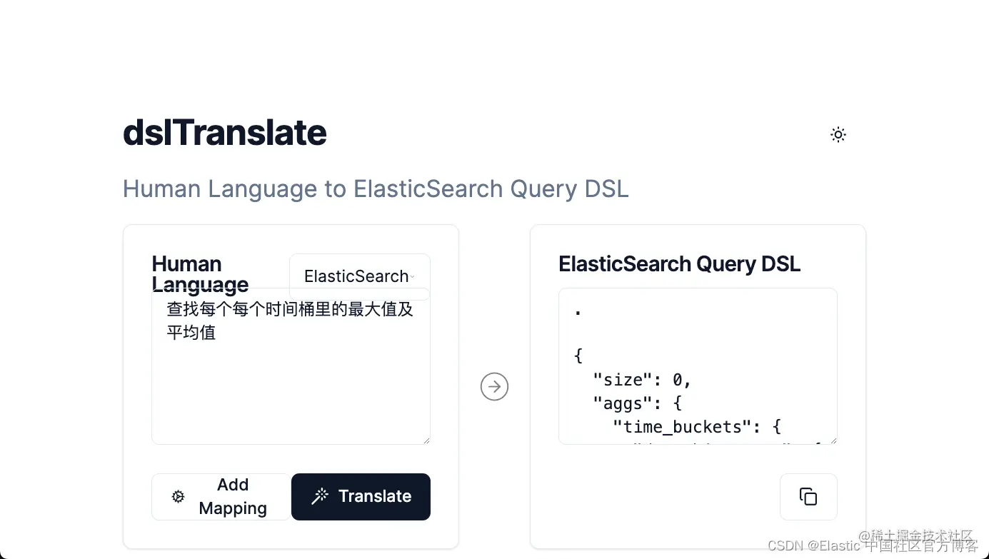 在今天的文章中,我来详细介绍一下一个网络上的工具。它可以帮助我们从人类语言的描述到 DSL 查询的转换。它的网址是 www.dsltranslate.com/。虽然我不知道它是如何实现的,但是从实现的方式上感觉非常像 ChatGPT。