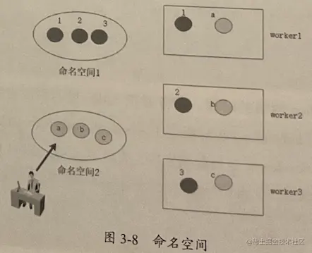 命名空间就是类似于QQ群的这样一种逻辑组织,当我们进入一个命名空间里的时候,所看到的内容(比如pod)其实是分布在不同的worker上的,如同同一个QQ群里的人是分布在不同的城市一样。作为管理员,我们只要在某命名空间对pod进行操作即可,不用关心这个pod到底是在哪个worker上运行的。