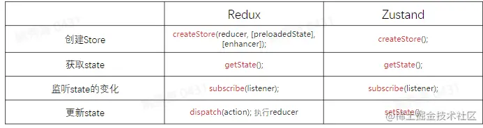 Zustand库的核心API和Redux极为相似,区别主要在状态的更新,Redux通过dispatch和reducer函数来进