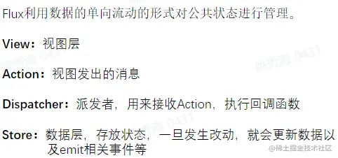 Redux是从Flux演变而来的, Flux它是Facebook官方给出的应用架构,利用数据的单向流动的形式对公共状态进行管理,不过现在已经被淘汰了,不过其设计思想还是可以参考和借鉴的,在聊Redux之前,我们先聊一下Flux状态管理。