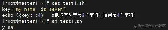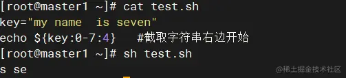 echo ${key:1:4} #截取字符串第2个字符开始到第4个字符