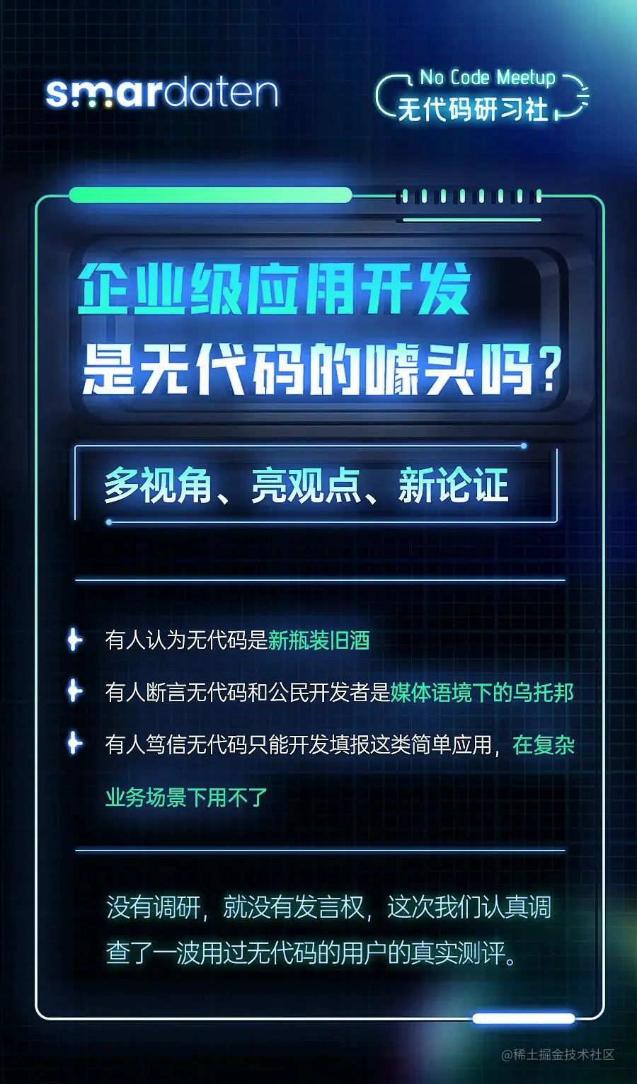 现场还有人针尖对麦芒地提出“以目前的场景来说,无代码的产品在实际使用中根本用不了”。