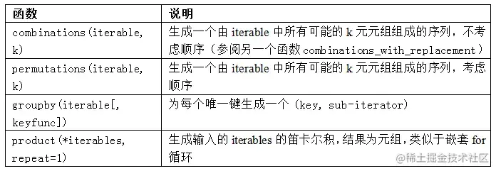 表3-2中列出了一些我经常用到的itertools函数。建议参阅Python官方文档,进一步学习。