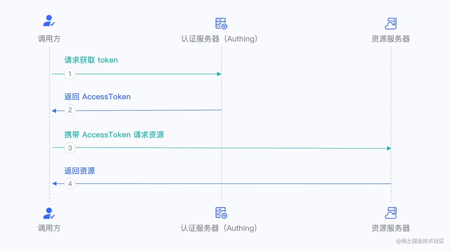 2. 如果凭证正确,并且调用方具备资源权限,Authing 为其颁发 AccessToken。