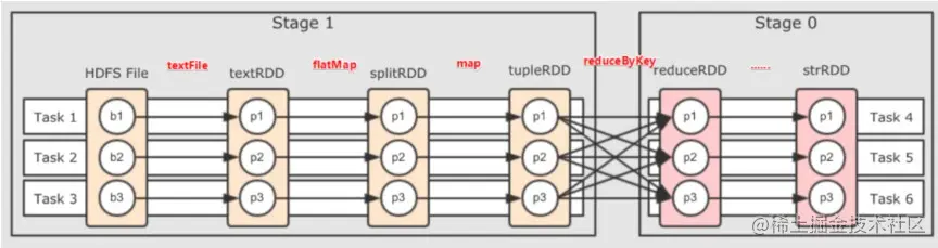 如图,在每一个阶段的内部,有多个Task并行计算,每一个Task是一个线程,线程的相关运算均在内存中完成;这样的多个Task,就形成了并行的内存计算管道;