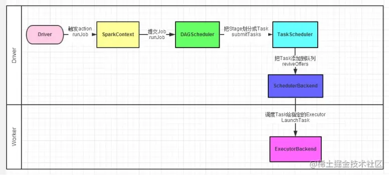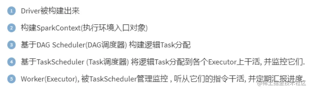 ①DAG调度器:将逻辑的DAG图进行处理,最终得到逻辑上的Task划分