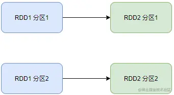 窄依赖:父RDD的一个分区,全部将数据发给子RDD的一个分区;